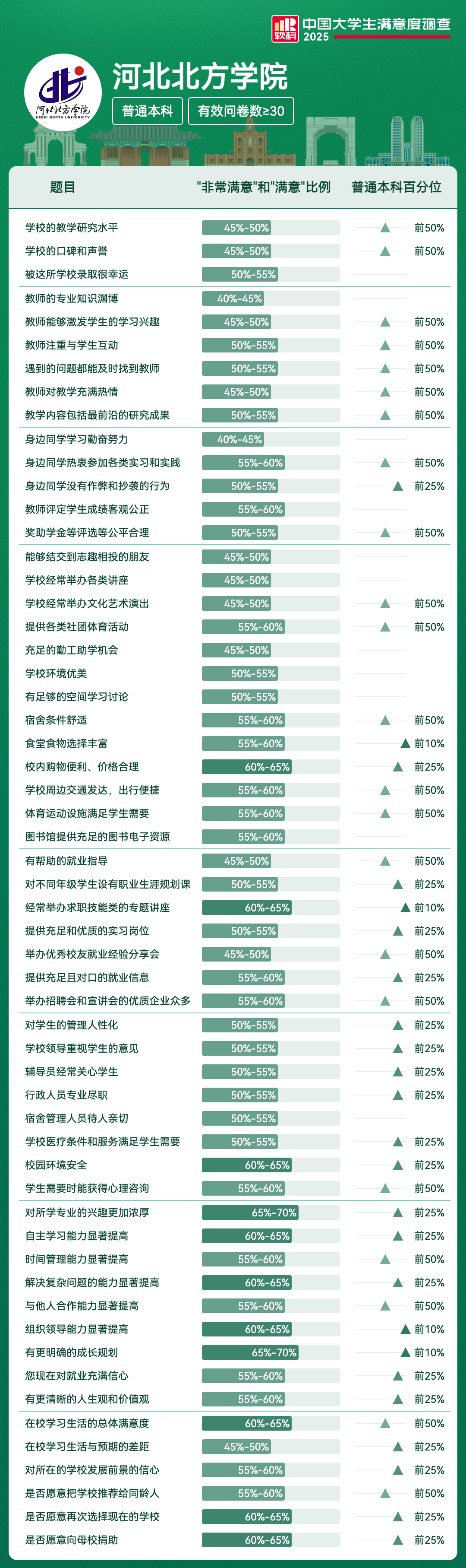 | 满意度前5项 | 满意及以上比例 | 全国高校排名区间 |