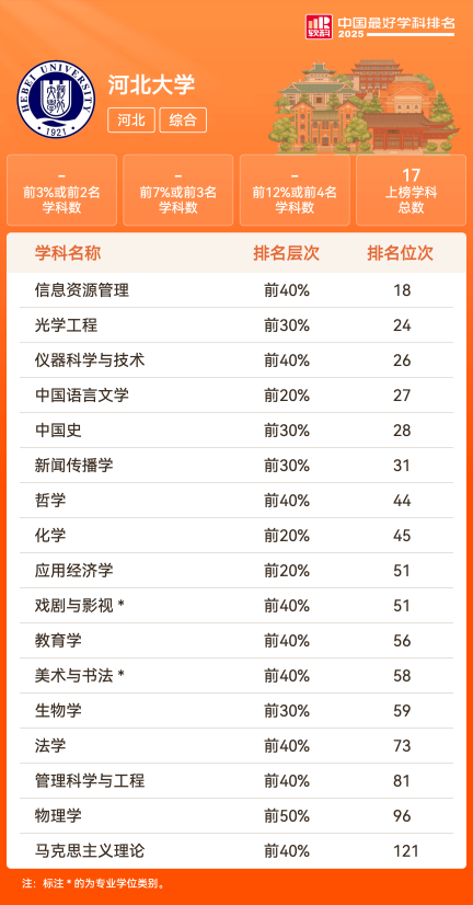 软科中国大学排名(主榜)  “软科中国大学排名”即“软科中国最好大学排名”,由上海软科教育信息咨询有限公司(简称软科)在2015年首次发布,2020年软科对中国大学排名进行了全面升级,倾力打造关于中国高校办学水平最为全面、最为系统、最为准确的排名评价,旨在向学生、家长和全社会提供更加及时、更加细致、更加有针对性的高校可比信息。