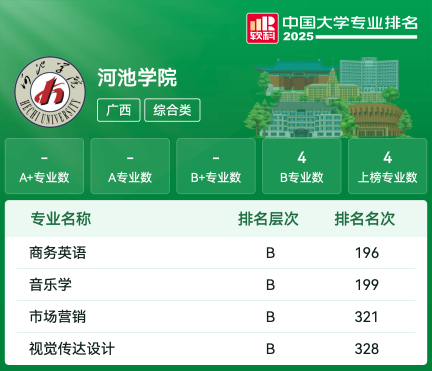 | 专业代码 | 专业名称 | 评级 | 专业排名 |