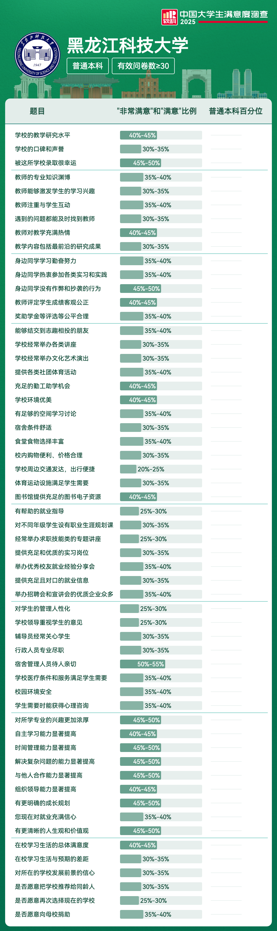 | 满意度前5项 | 满意及以上比例 | 全国高校排名区间 |