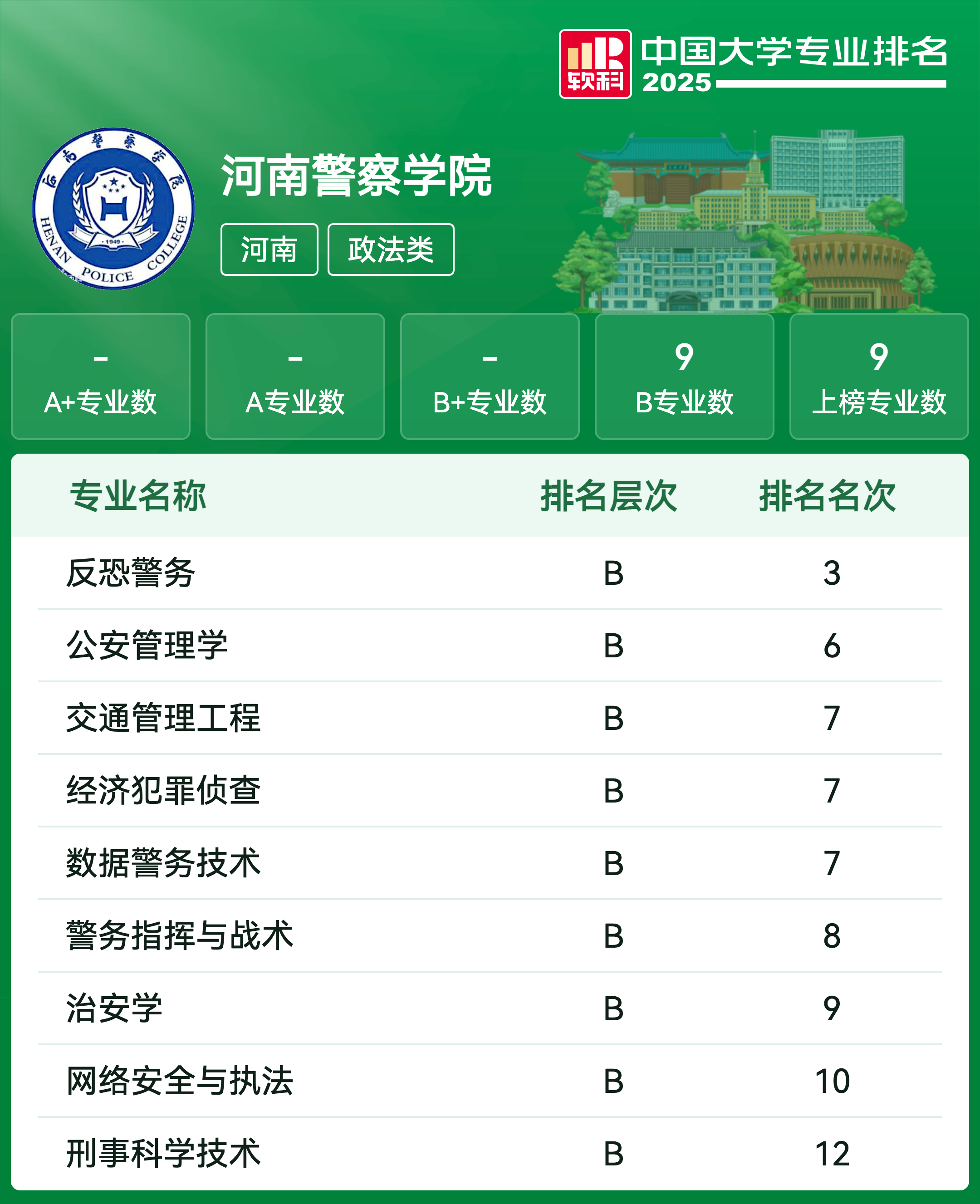 | 专业代码 | 专业名称 | 评级 | 专业排名 |
