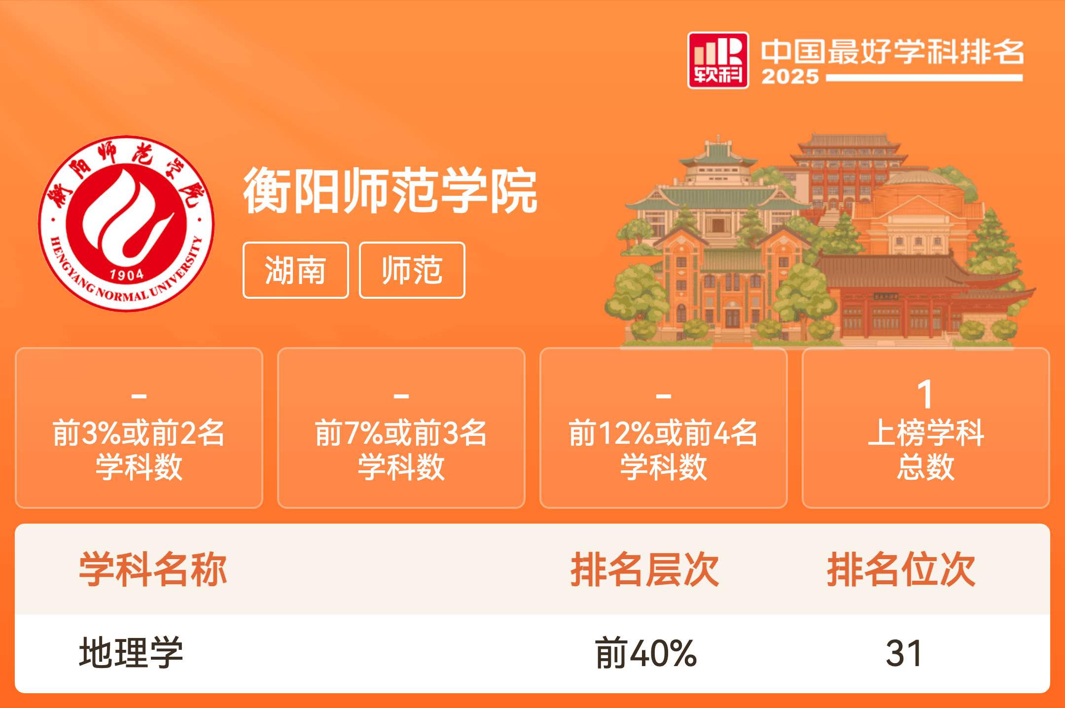 | 学科名称 | 排名层次 | 学科排名 |