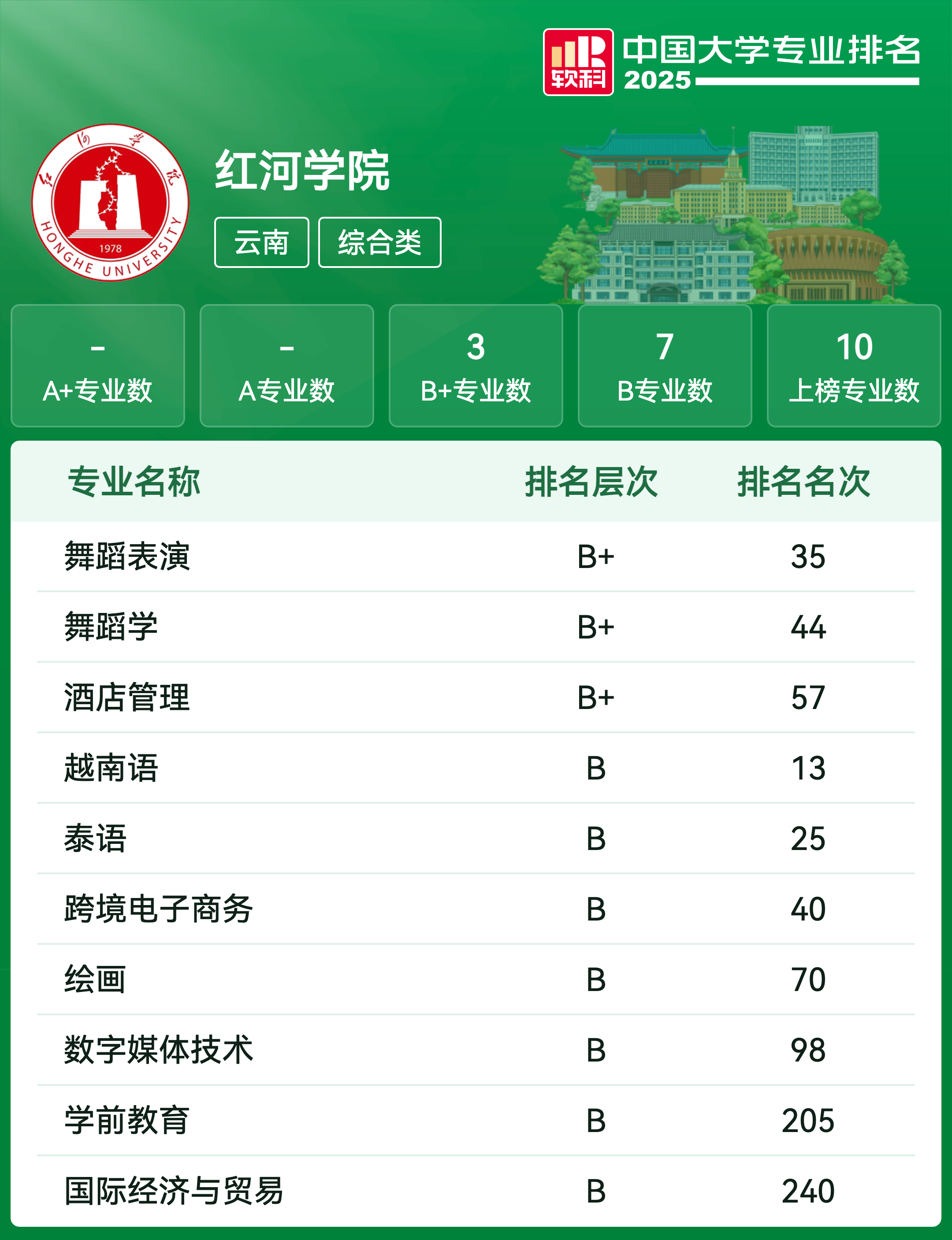 | 专业代码 | 专业名称 | 评级 | 专业排名 |
