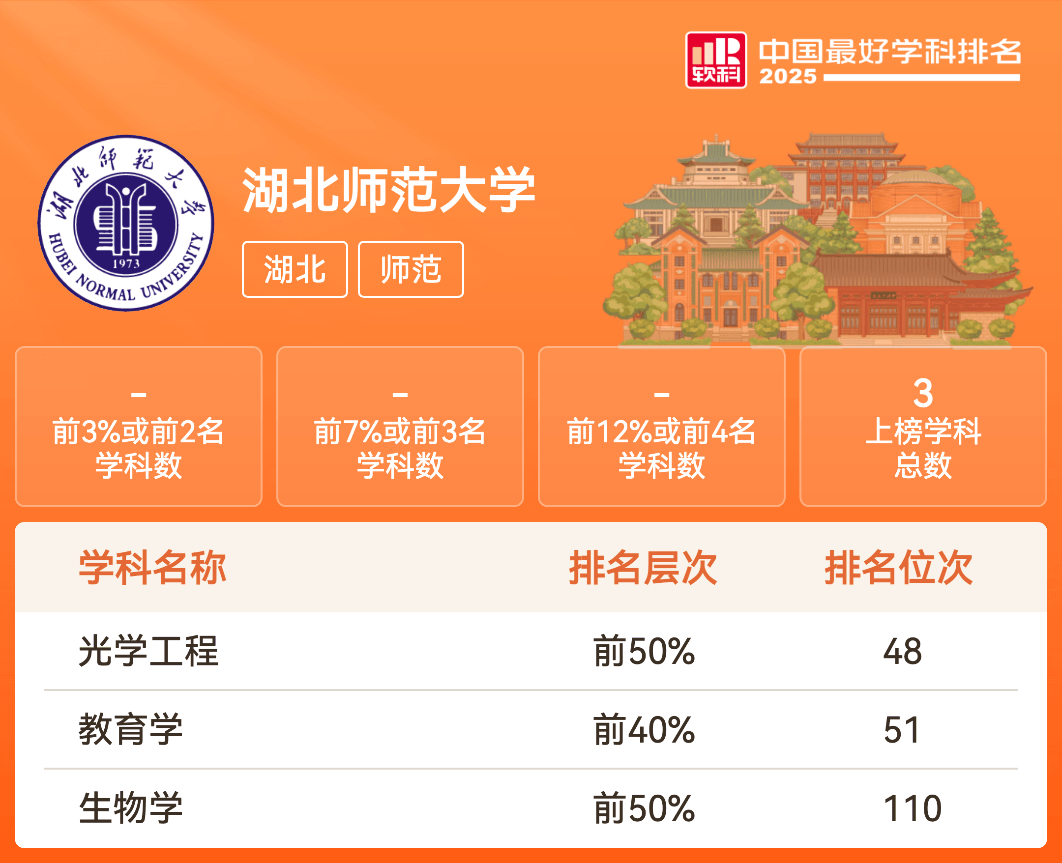| 学科名称 | 排名层次 | 学科排名 |