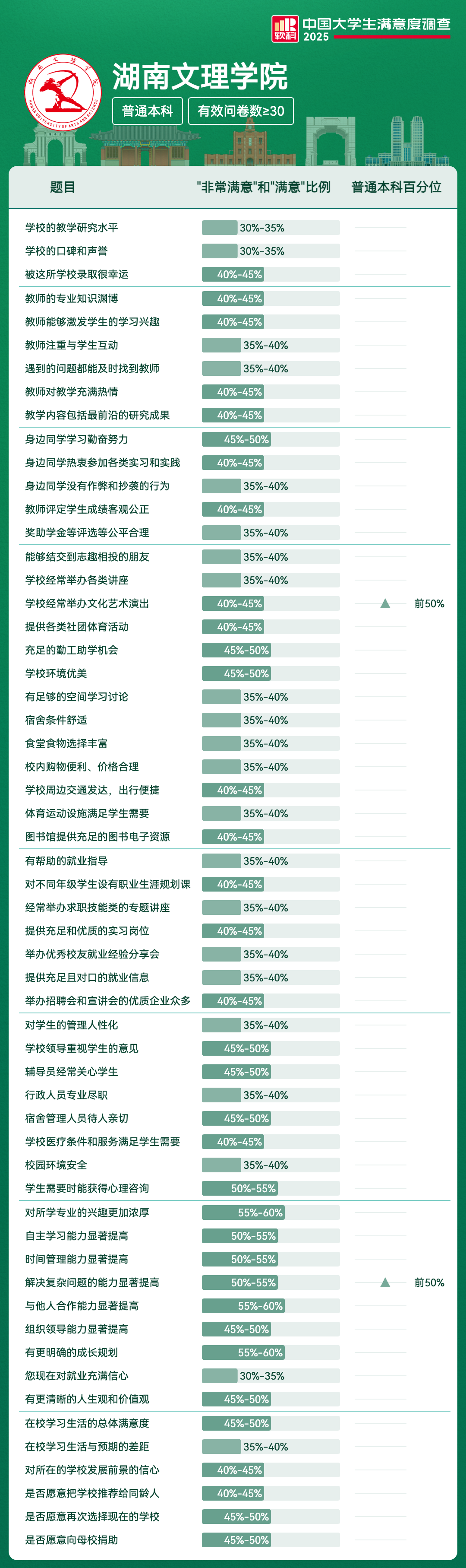| 学校经常举办文化艺术演出 | 40%-45% | 前50% |