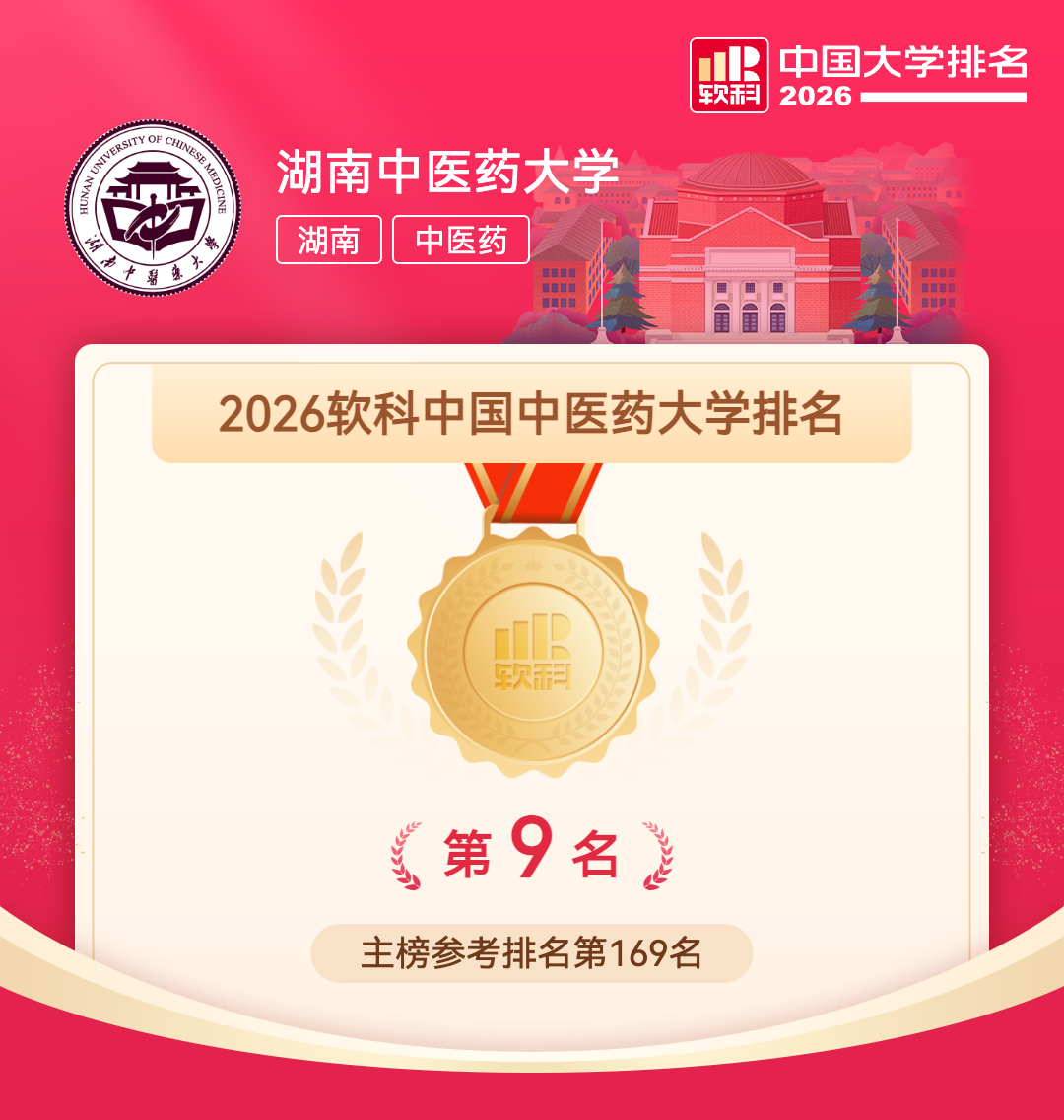 学校坐落于中国历史文化名城长沙,是湖南省重点建设本科院校、全国首批设立国家级重点学科的高校。学科门类齐全,设有18个学院、26个本科专业,涵盖医、理、工、管、文等5大学科门类。具有接收优秀应届本科毕业生免试攻读硕士学位的资格。建有国家重点学科1个、国家中医药管理局重点学科23个、湖南省重点学科10个,其中湖南省优势特色重点学科2个,构建了以中医药学科为主体的三级重点学科体系。