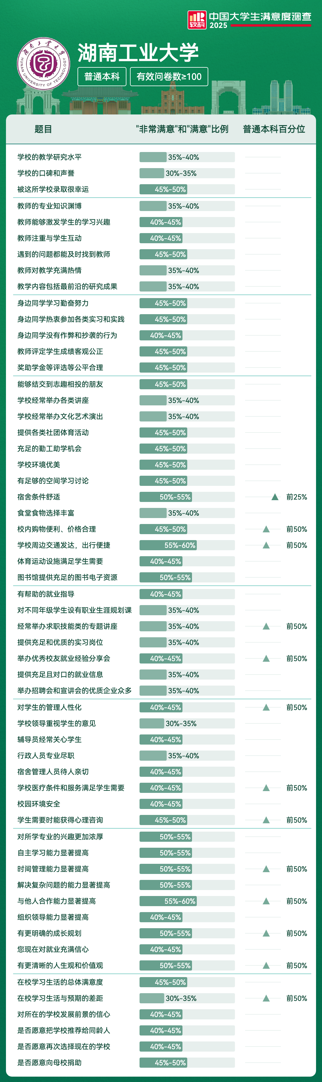 满意度前5项 | 满意及以上比例 | 全国高校排名区间 |