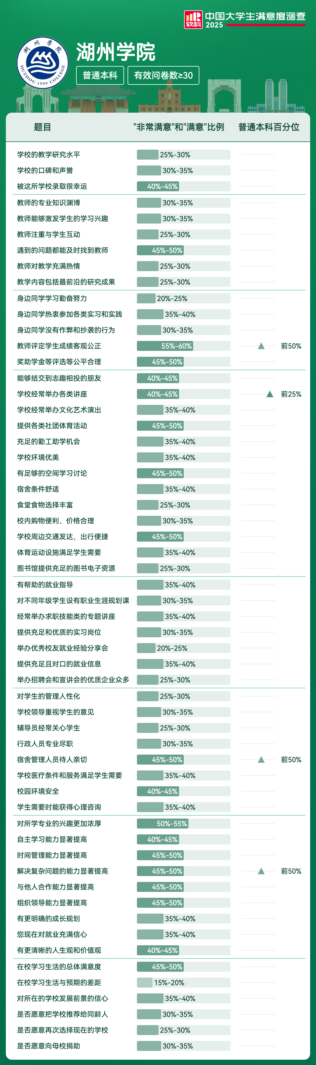| 学校经常举办各类讲座 | 40%-45% | 前25% |