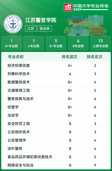 | 专业代码 | 专业名称 | 评级 | 专业排名 |