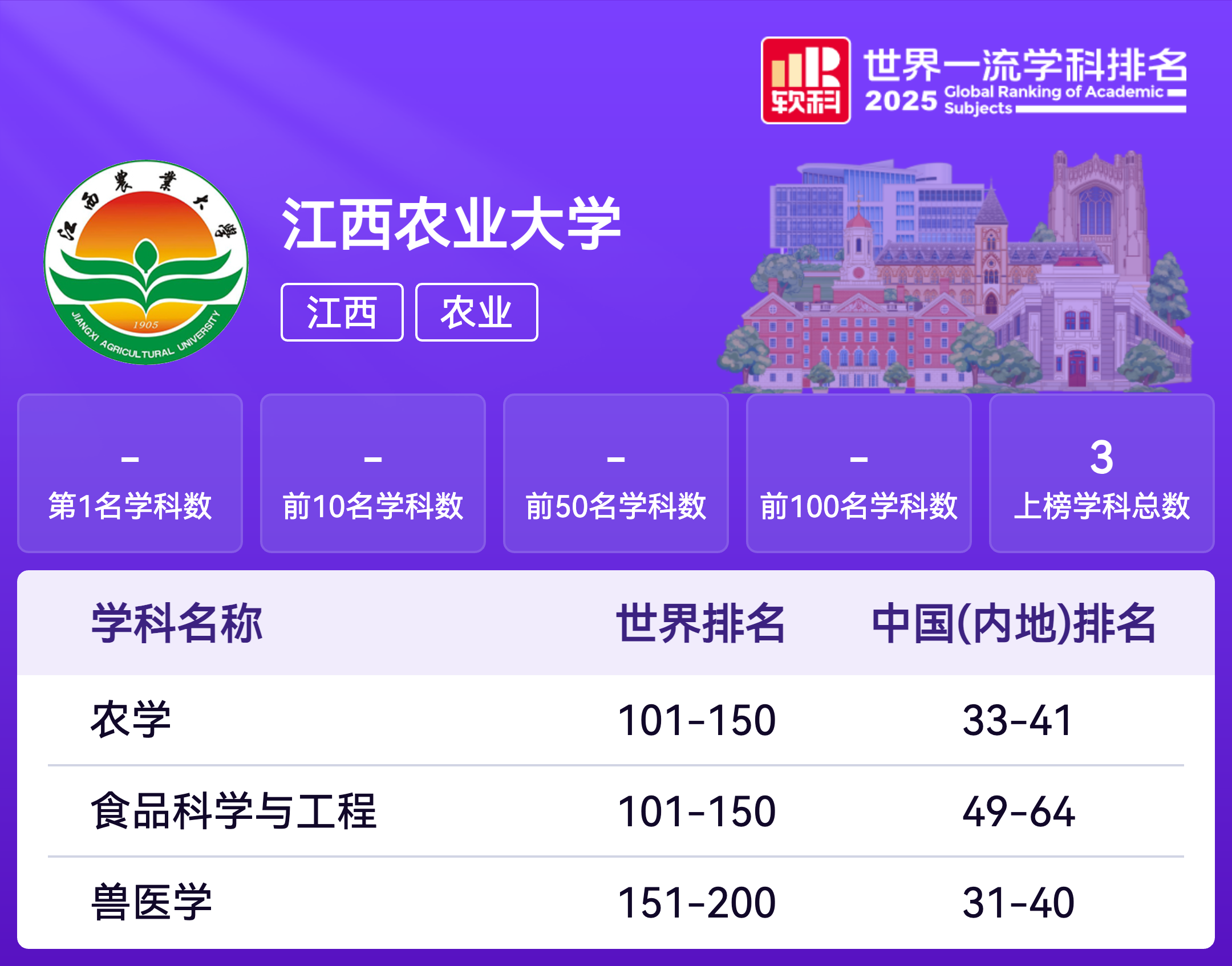 | 农学 | 101-150 |