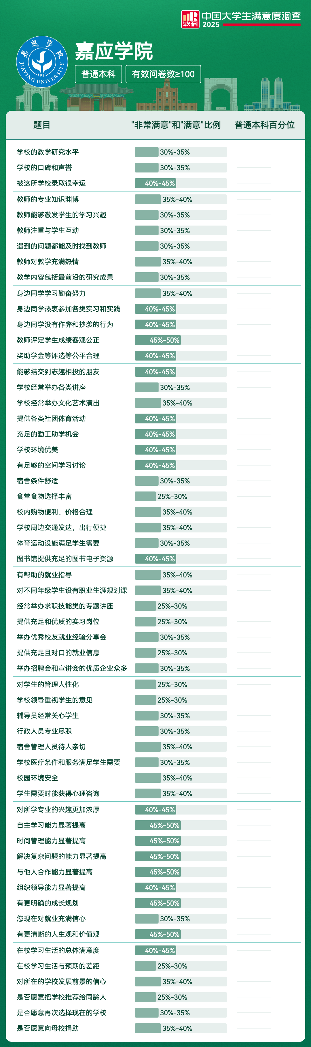 | 被这所学校录取很幸运 | 40%-45% | |