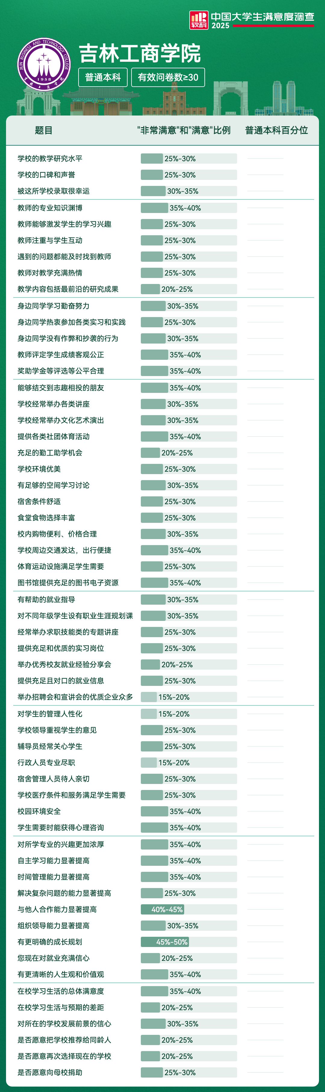 | 学校的教学研究水平 | 25%-30% | |