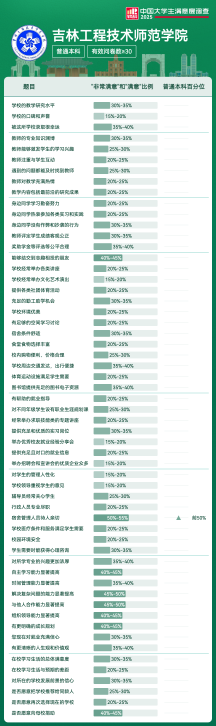 | 满意度前5项 | 满意及以上比例 | 全国高校排名区间 |