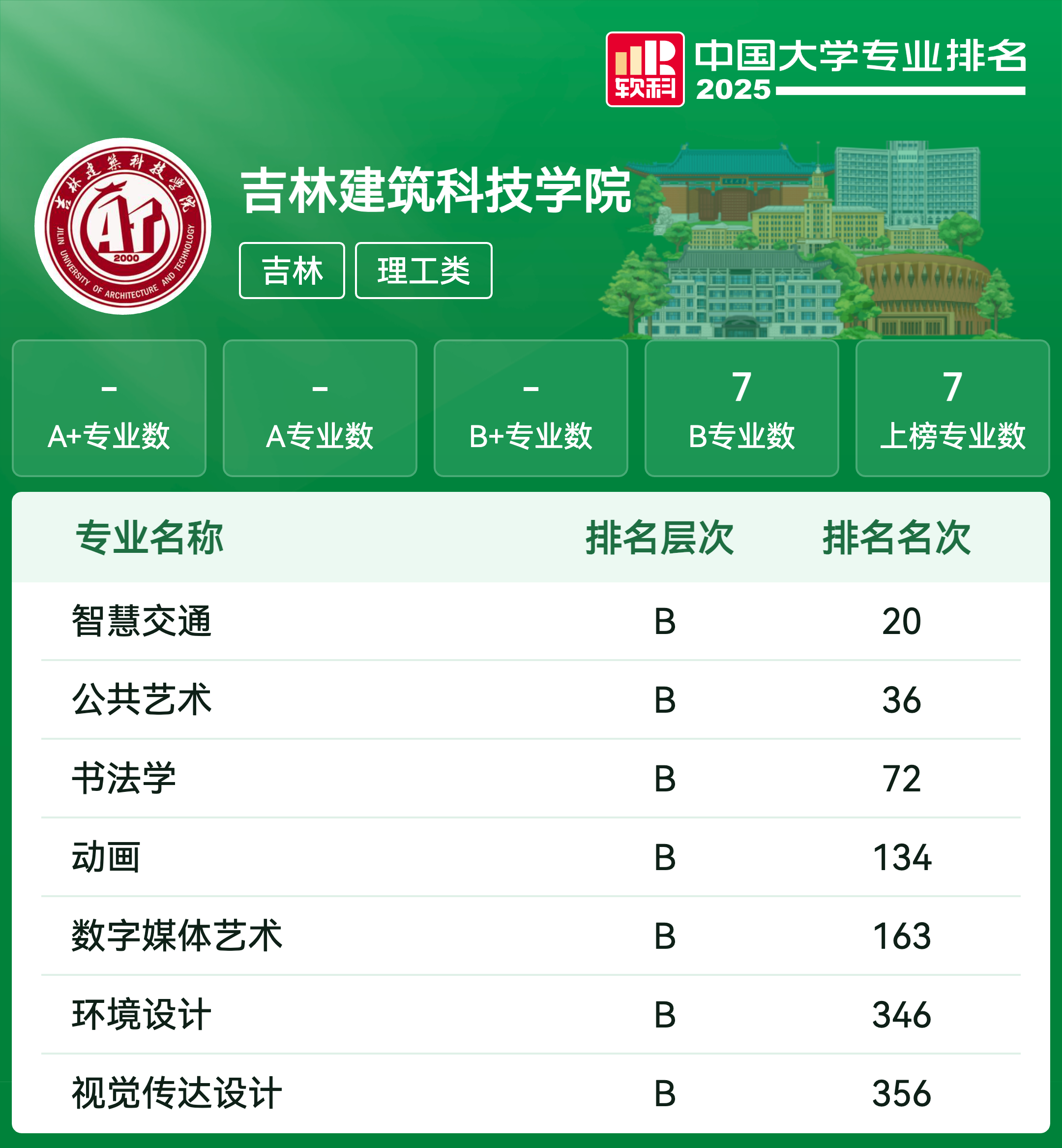 学校秉承“育人为本、德育为先、质量立校、人才强校、特色兴校”的办学理念,坚持“质量一流、管理一流、设施一流、服务一流”的办学目标,扎根应用型人才培养,2017年被批准为吉林省硕士学位立项建设单位,是吉林省转型发展示范高校,吉林省本科人才培养改革示范高校,吉林省党建工作示范高校,作为吉林省唯一一所“三示范”高校,多年来为国家和地方城乡建设、运行和管理领域,输送了大量的应用型人才。