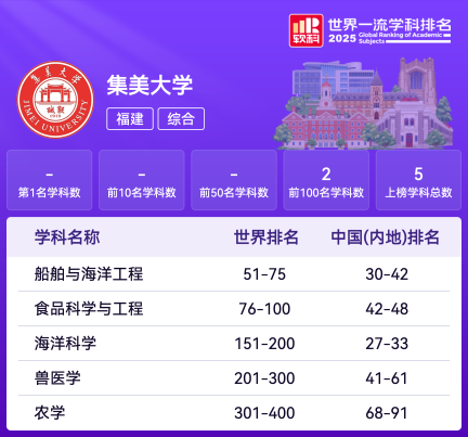 | 学科代码 | 学科名称 | 排名层次 | 学科排名 |