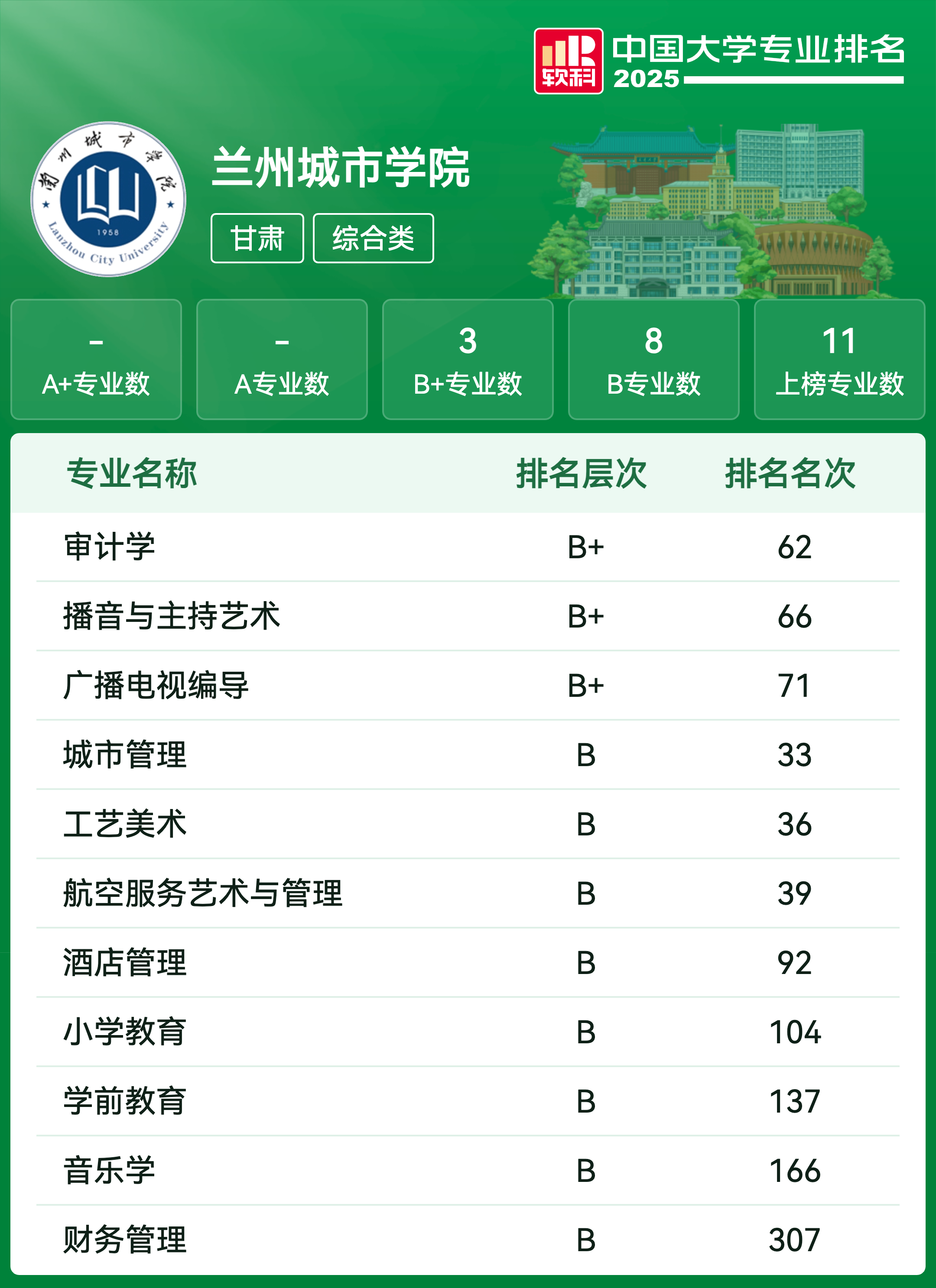 | 专业代码 | 专业名称 | 评级 | 专业排名 |