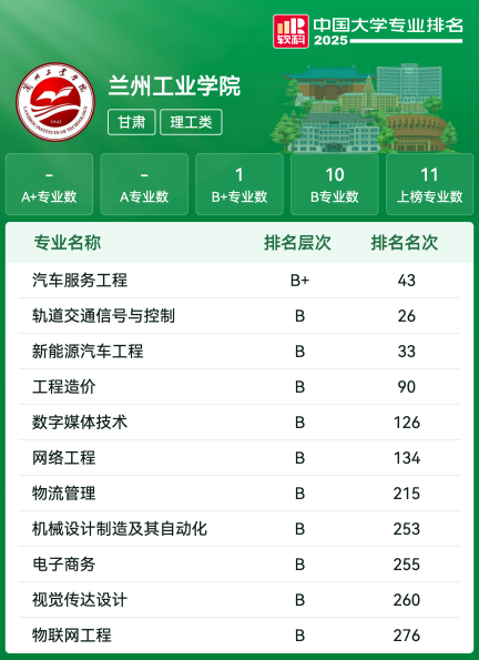 | 专业代码 | 专业名称 | 评级 | 专业排名 |