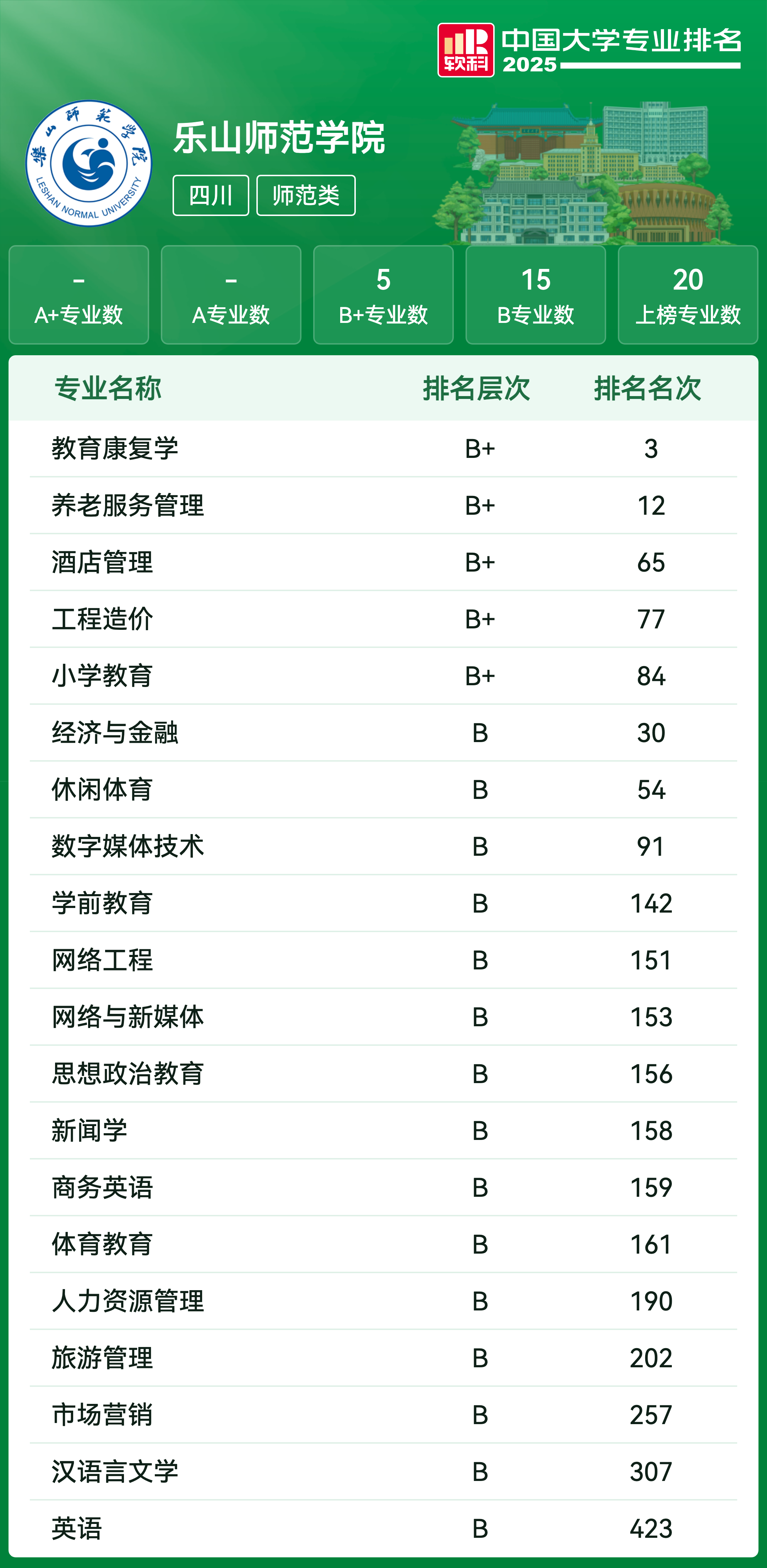 | 专业代码 | 专业名称 | 评级 | 专业排名 |