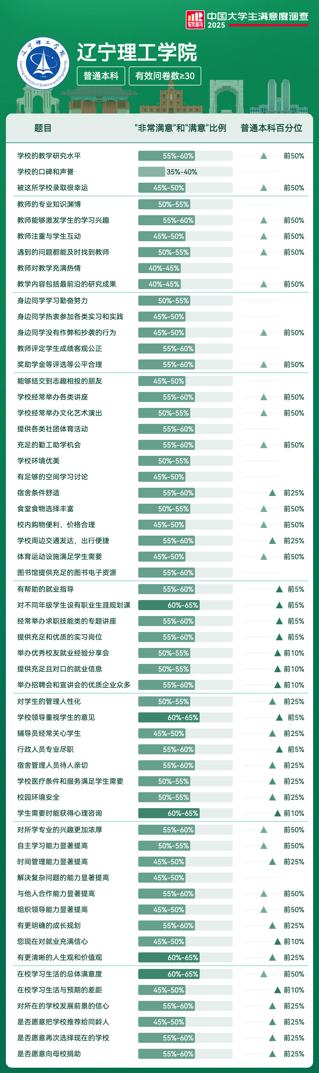 | 学校领导重视学生的意见 | 60%-65% | 前5% |