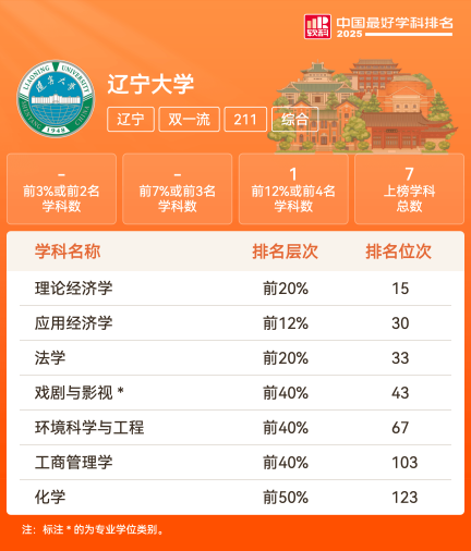 辽宁大学源起于1948年11月东北人民政府在沈阳建立的商业专门学校,是中国共产党创建的第一所专门商科高校。1953年,东北商业专科学校合入东北财经学院。1958年,东北财经学院、沈阳师范学院的部分科系与沈阳俄文专科学校合并,组建成辽宁大学。辽宁大学是国家世界一流学科建设高校、“211工程”重点建设高校、辽宁省一流大学重点建设高校,入选“卓越法律人才教育培养计划”“国家建设高水平大学公派研究生项目”“国家级大学生创新创业训练计划”,为全国深化创新创业教育改革示范高校、国家大学生文化素质教育基地、中国自由贸易试验区研究院联盟成员单位。