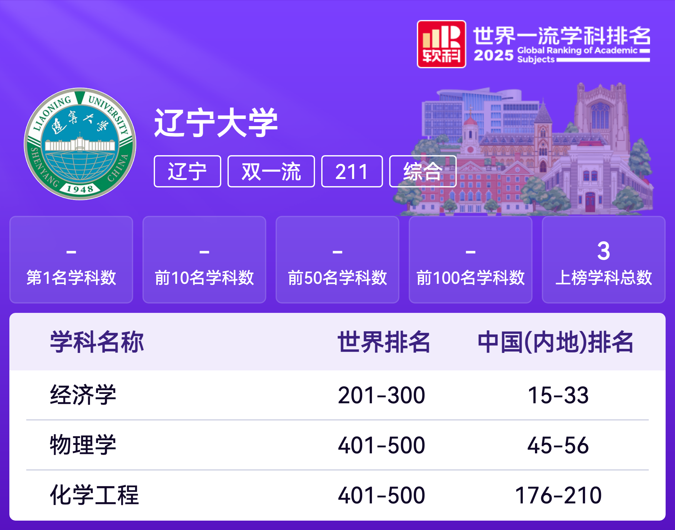 | 学科代码 | 学科名称 | 排名层次 | 学科排名 |