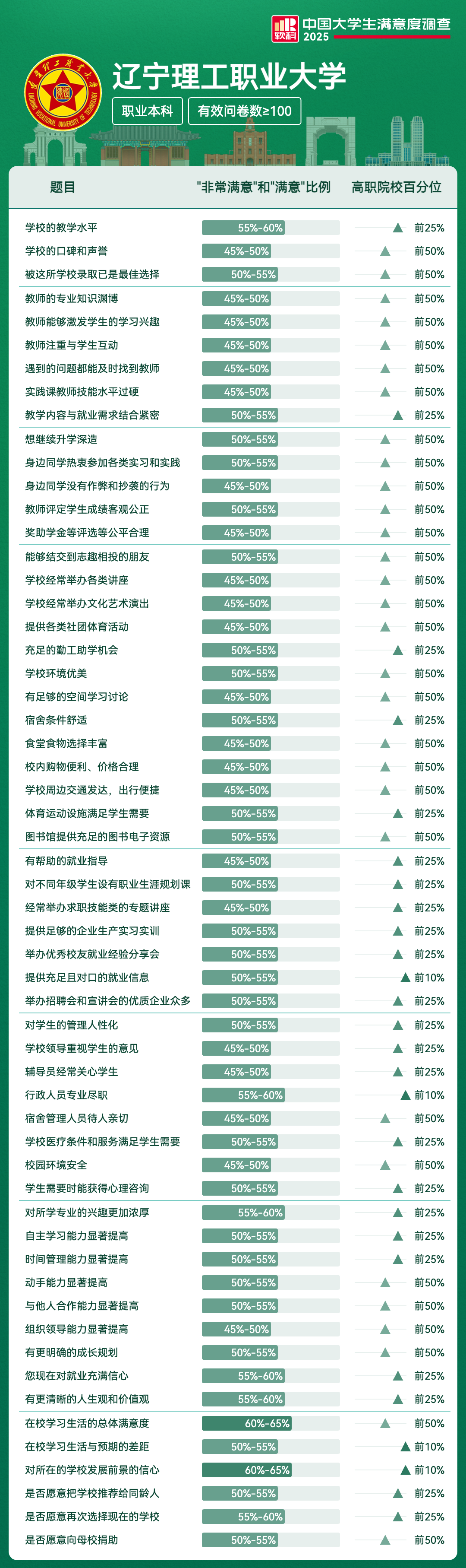 提供充足且对口的就业信息 | 50%-55% | 前10% |