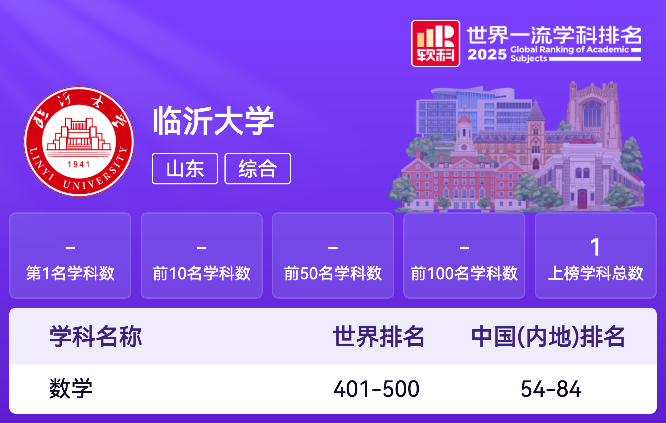 | 学科名称 | 排名层次 | 学科排名 |