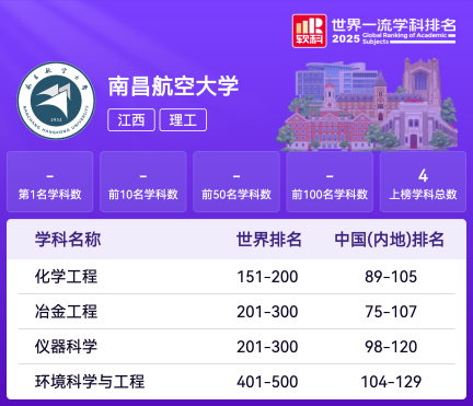| 学科代码 | 学科名称 | 排名层次 | 学科排名 |