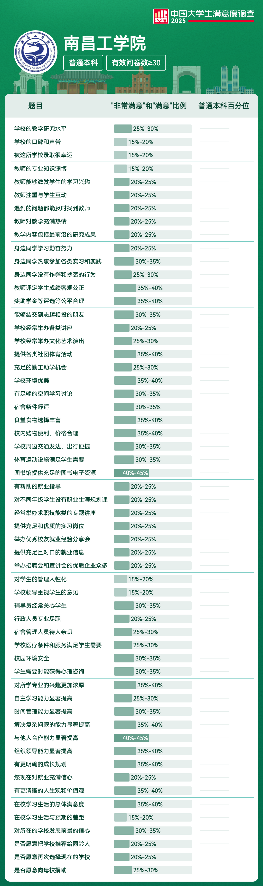 | 学校的教学研究水平 | 25%-30% | |