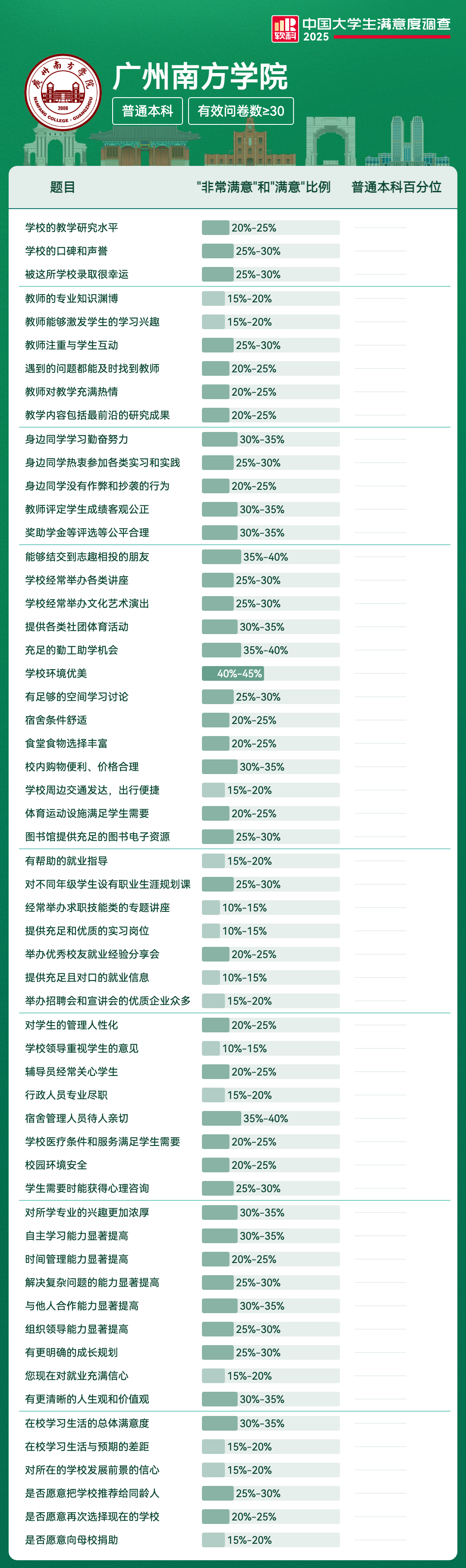 | 被这所学校录取很幸运 | 25%-30% | |