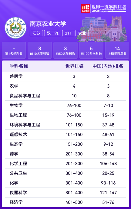 历史悠久,底蕴深厚 学校办学历史悠久,前身可溯源至1902年三江师范学堂农业博物科和1914年金陵大学农科,是中国最早创办四年制农业本科的高校,已有119年的办学历史,先后造就包括60位院士在内的30余万名优秀人才。