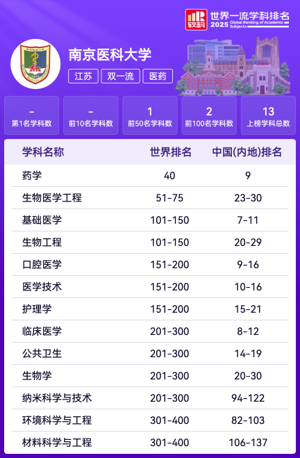 软科中国医药类大学排名