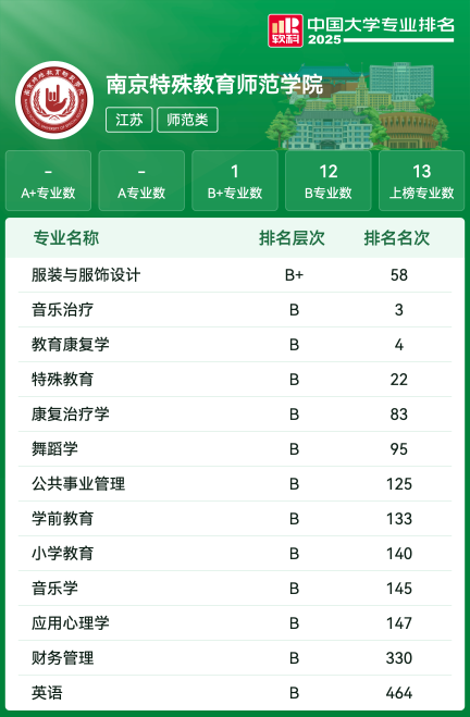 | 专业代码 | 专业名称 | 评级 | 专业排名 |