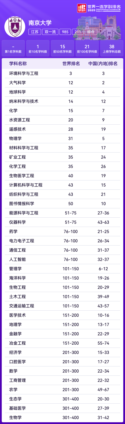 软科中国大学排名(主榜)