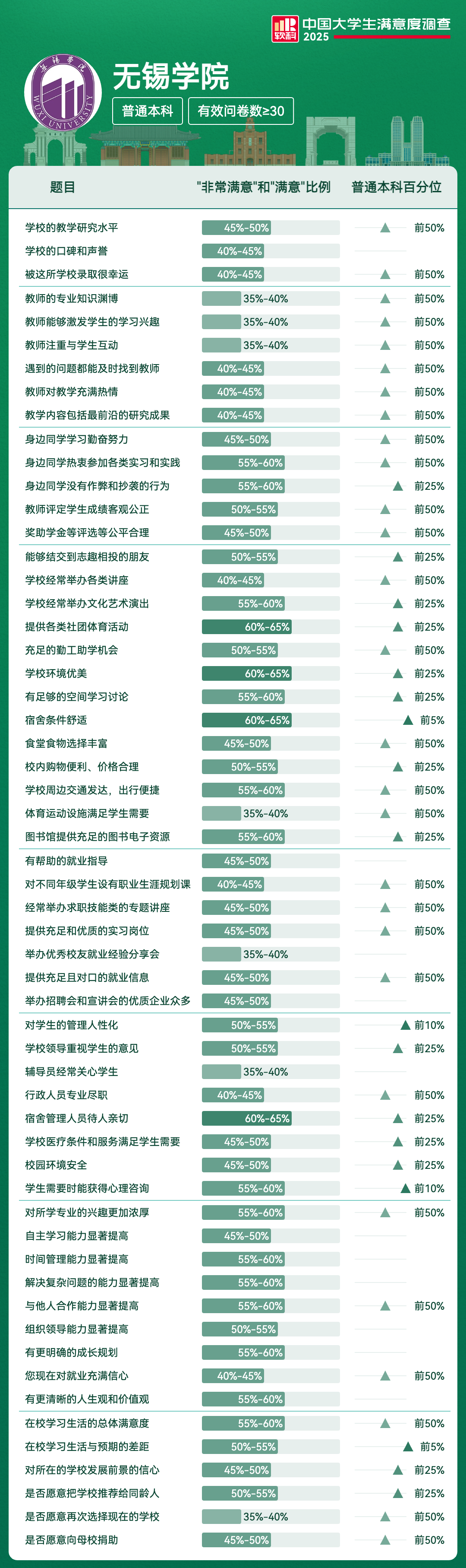| 宿舍条件舒适 | 60%-65% | 前5% |