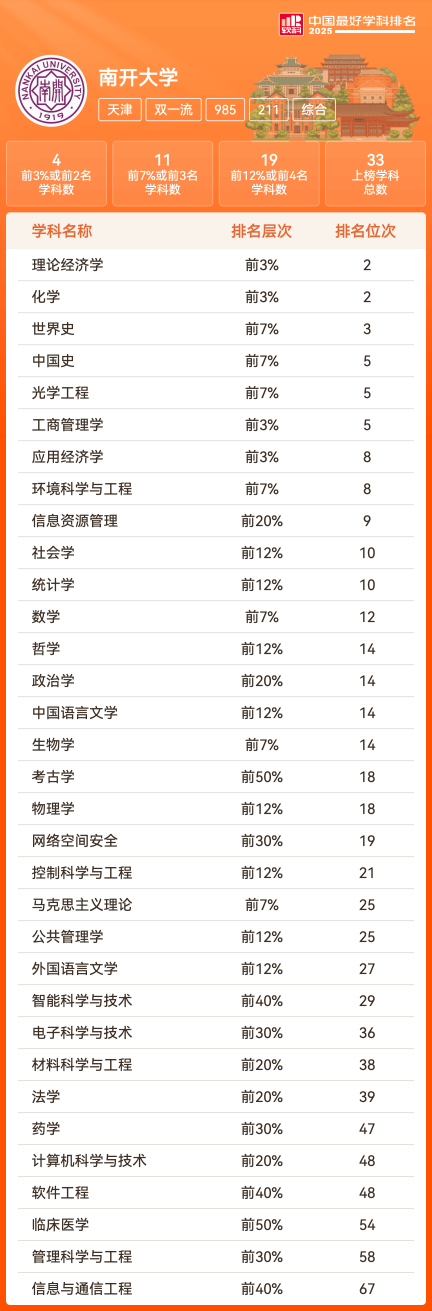 “软科中国大学排名”即“软科中国最好大学排名”,由上海软科教育信息咨询有限公司(简称软科)在2015年首次发布,2020年软科对中国大学排名进行了全面升级,倾力打造关于中国高校办学水平最为全面、最为系统、最为准确的排名评价,旨在向学生、家长和全社会提供更加及时、更加细致、更加有针对性的高校可比信息。