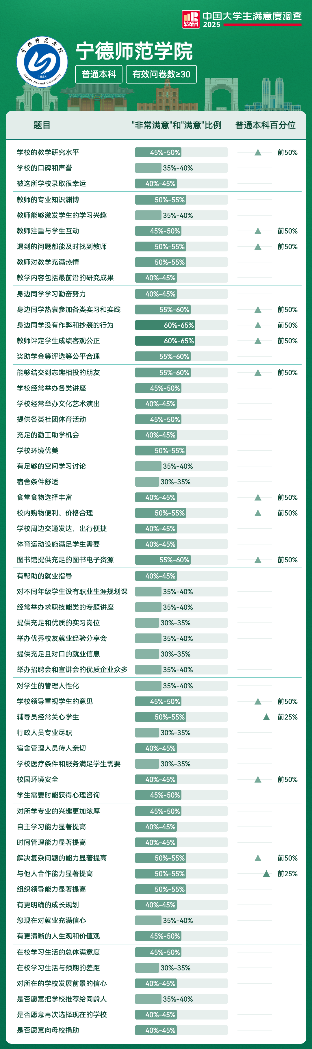 | 满意度前5项 | 满意及以上比例 | 全国高校排名区间 |