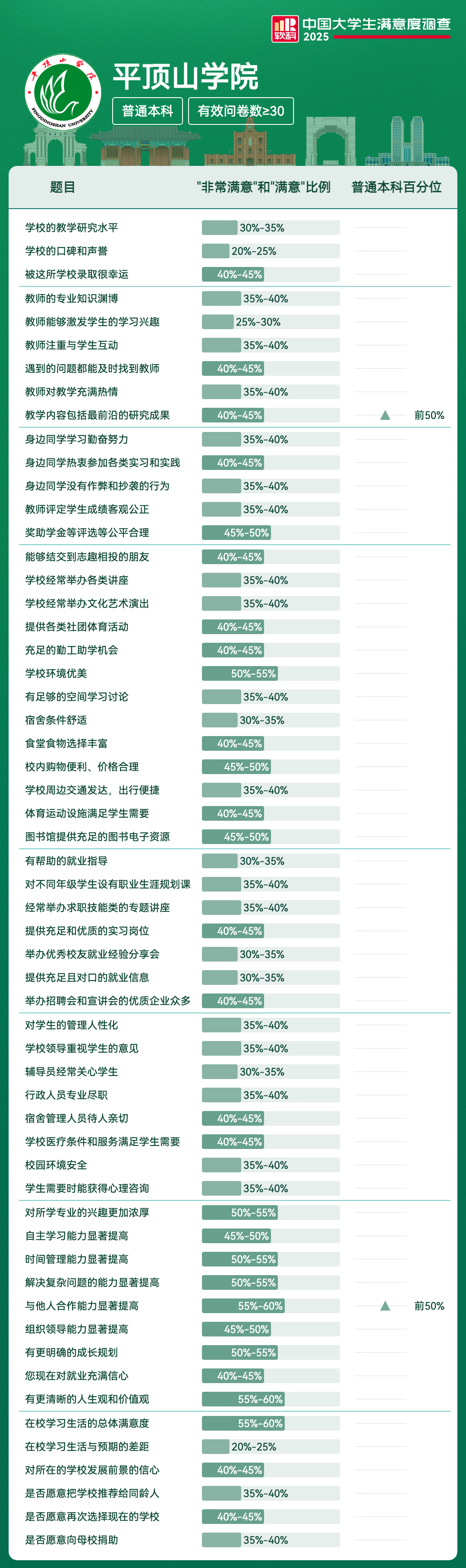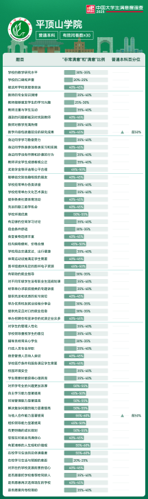 | 满意度前5项 | 满意及以上比例 | 全国高校排名区间 |