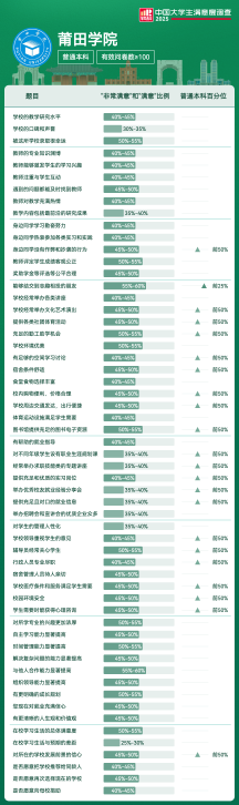 | 满意度前5项 | 满意及以上比例 | 全国高校排名区间 |