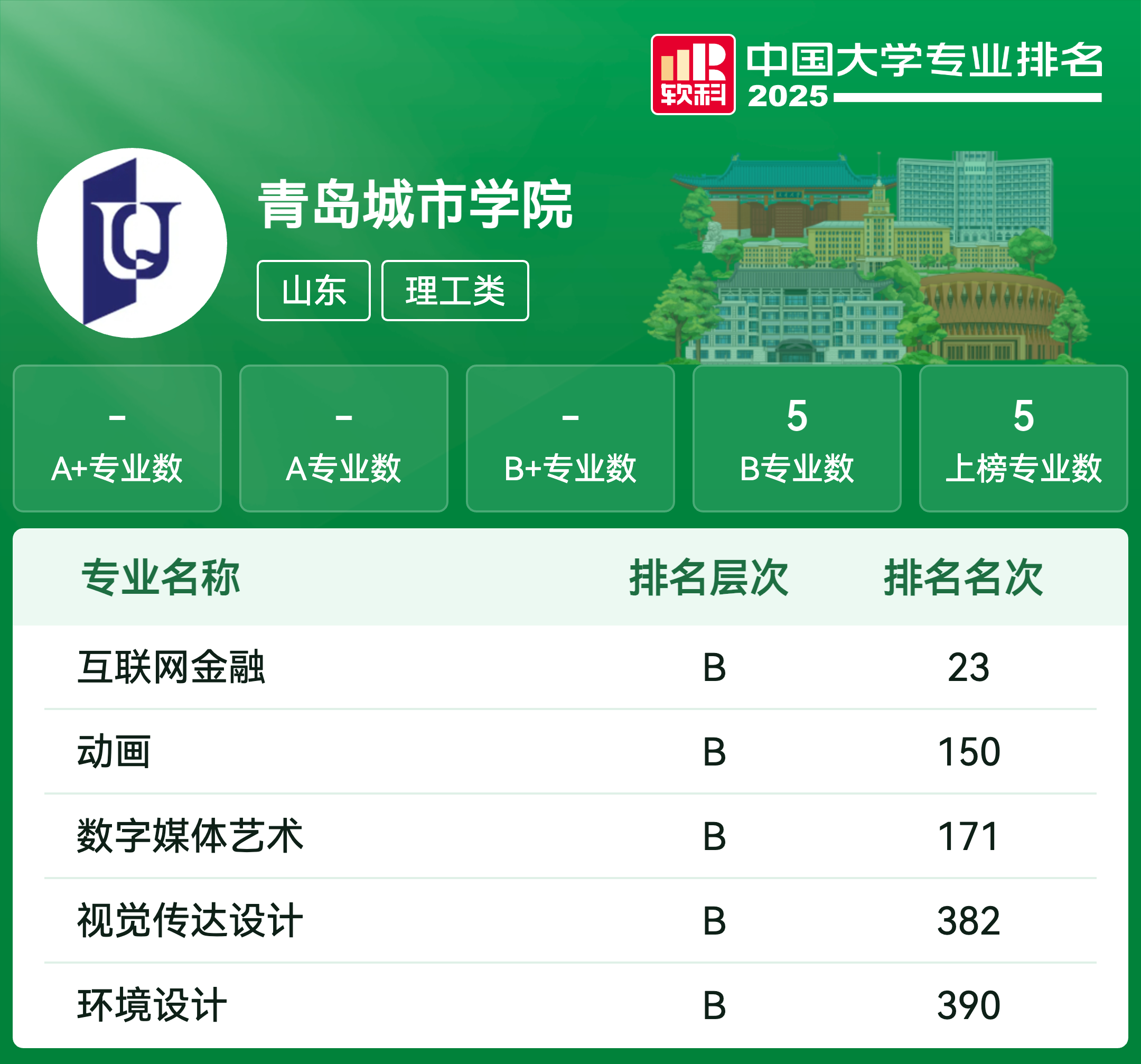 | 专业代码 | 专业名称 | 评级 | 专业排名 |
