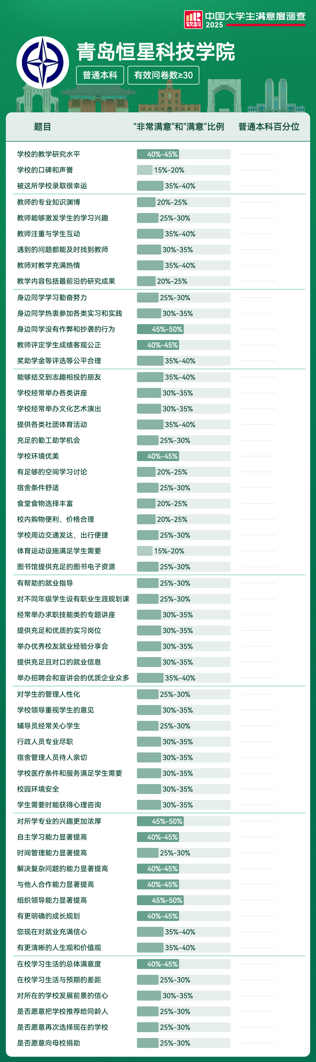 | 满意度前5项 | 满意及以上比例 | 全国高校排名区间 |