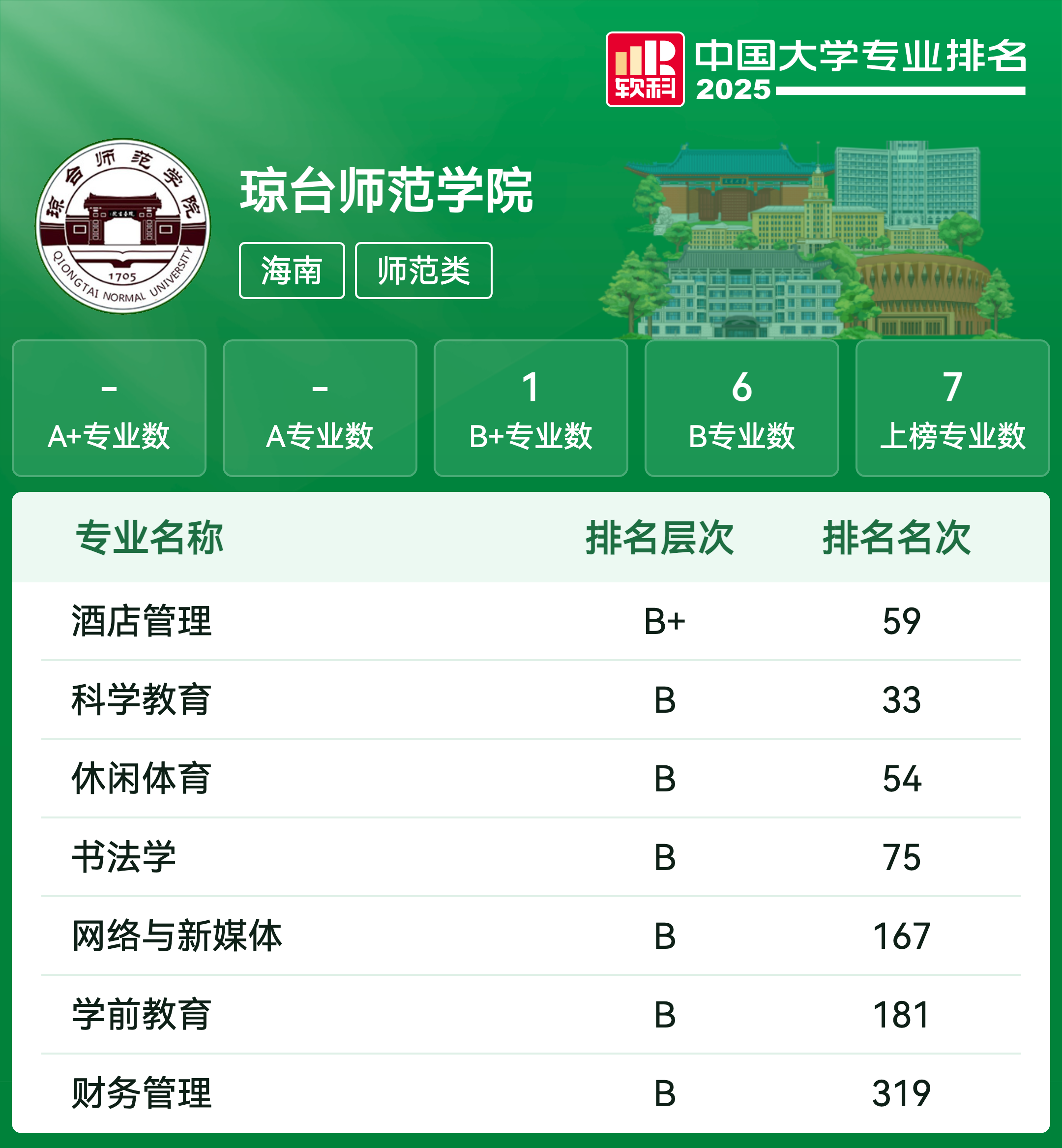 | 专业代码 | 专业名称 | 评级 | 专业排名 |