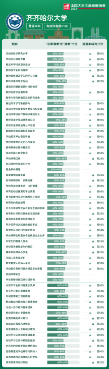 | 满意度前5项 | 满意及以上比例 | 全国高校排名区间 |