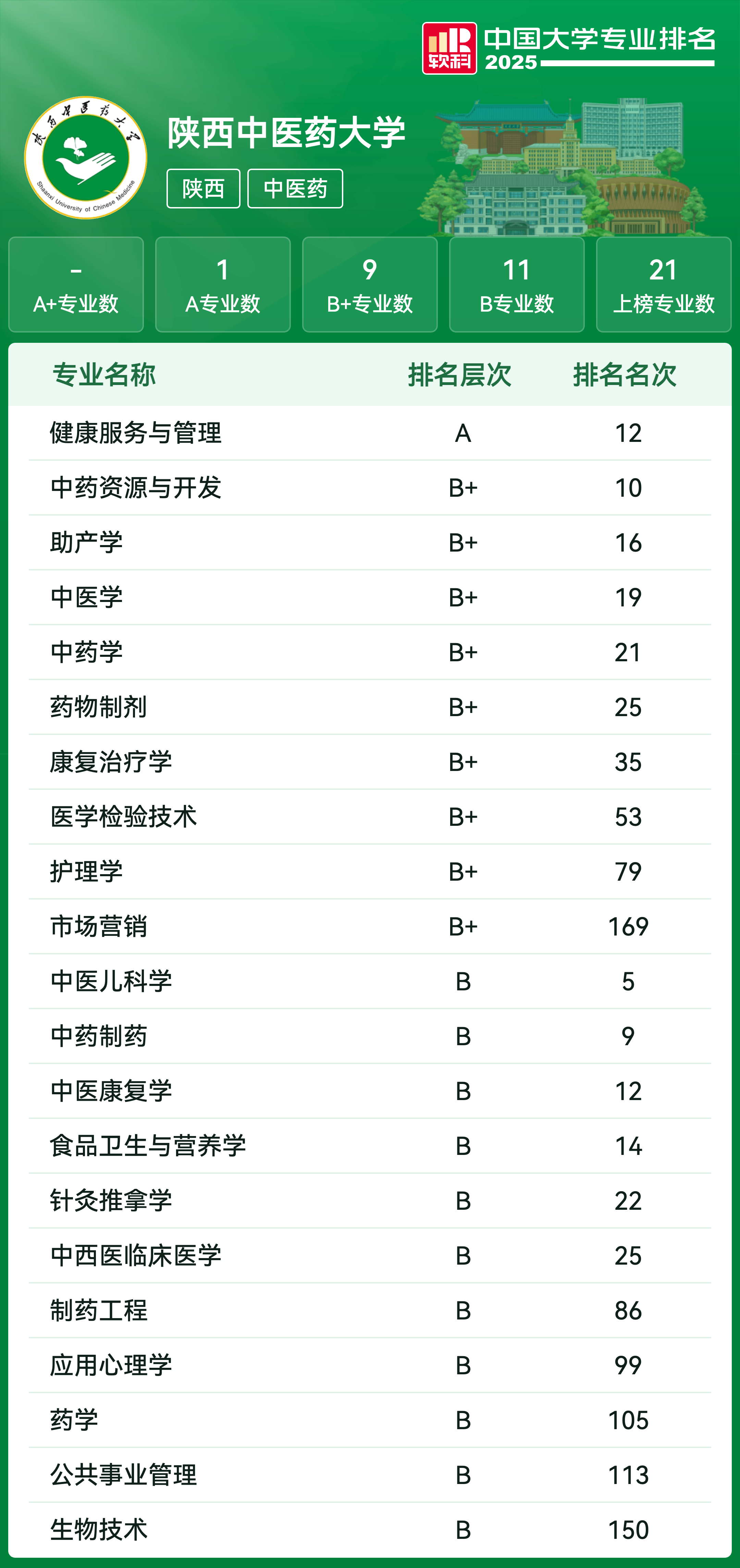 中药学 | B+ | 21 |