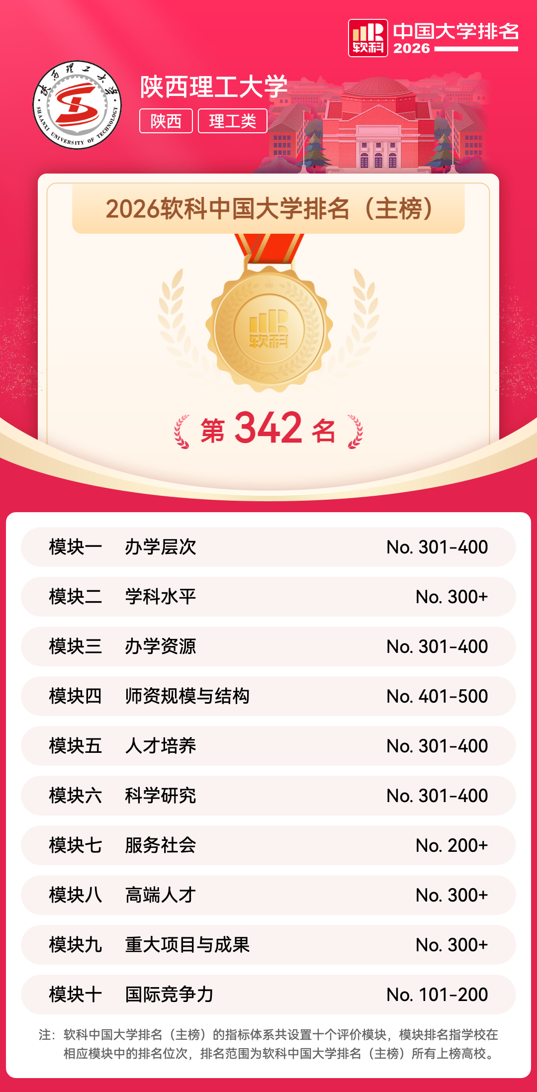 “软科中国大学排名”即“软科中国最好大学排名”,由上海软科教育信息咨询有限公司(简称软科)在2015年首次发布,2020年软科对中国大学排名进行了全面升级,倾力打造关于中国高校办学水平最为全面、最为系统、最为准确的排名评价,旨在向学生、家长和全社会提供更加及时、更加细致、更加有针对性的高校可比信息。