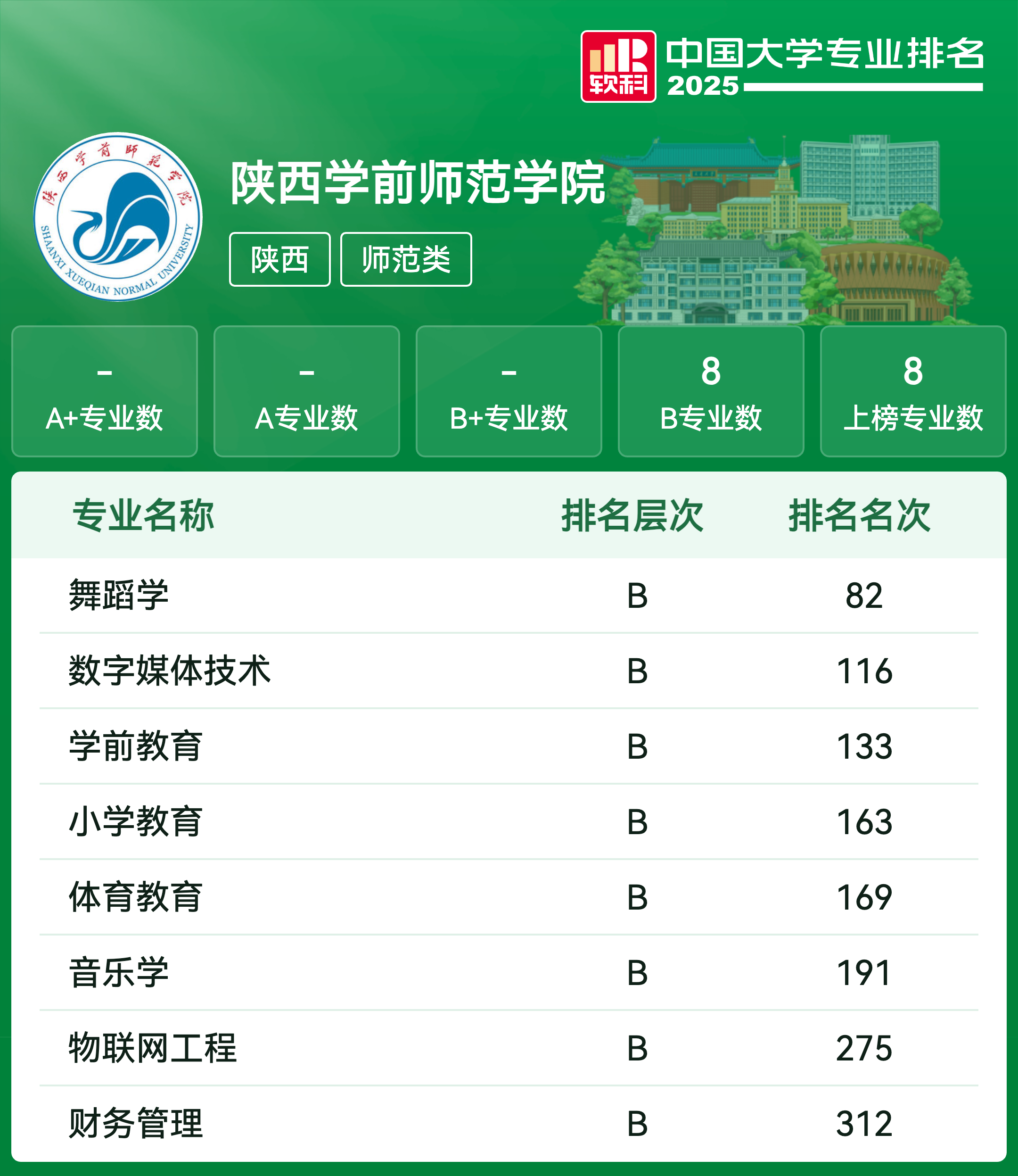 | 专业代码 | 专业名称 | 评级 | 专业排名 |