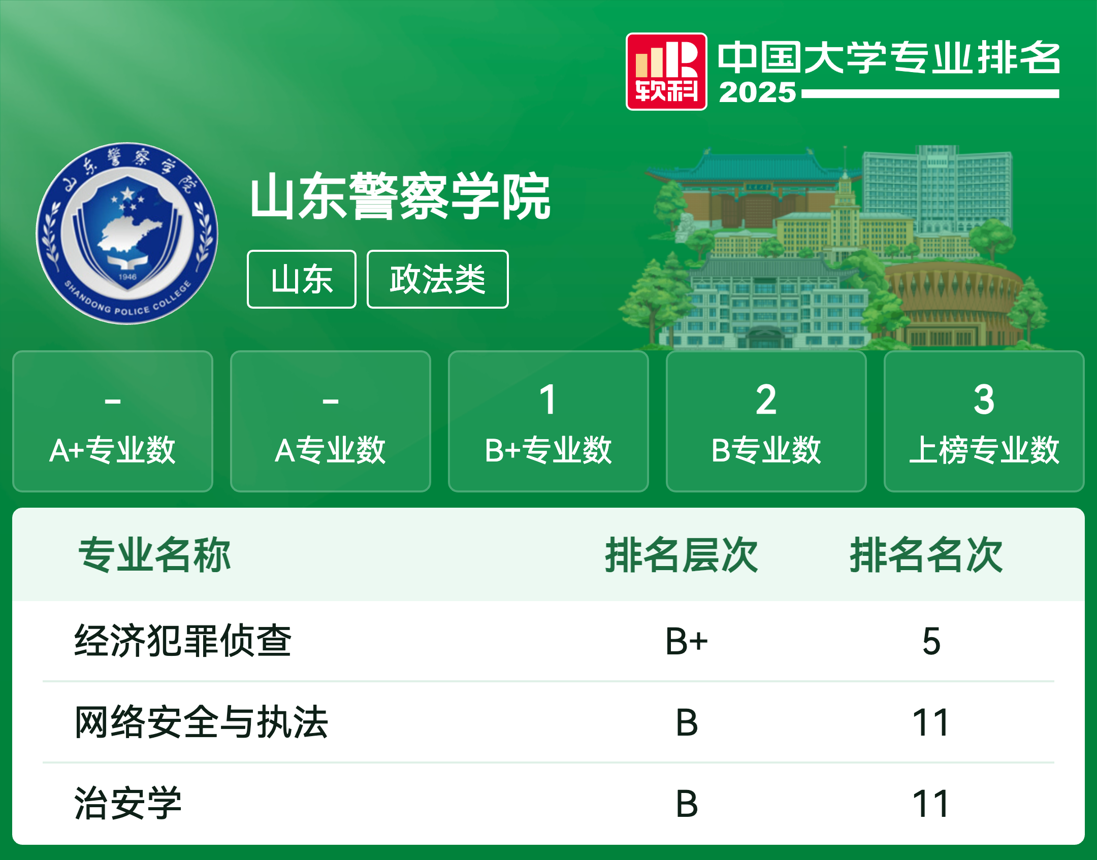 | 专业代码 | 专业名称 | 评级 | 专业排名 |