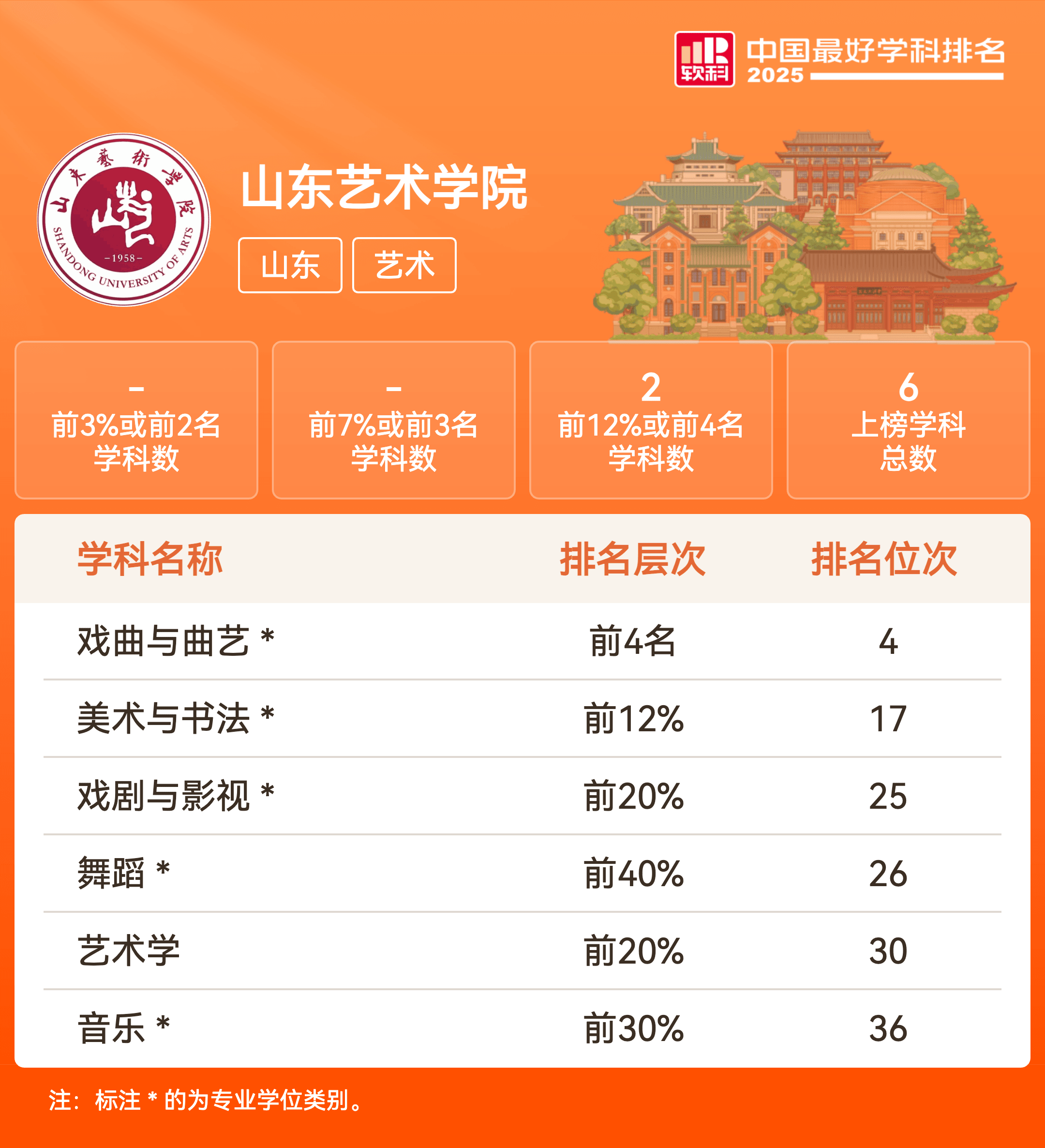 | 戏曲与曲艺 | 前4名 | 4 |