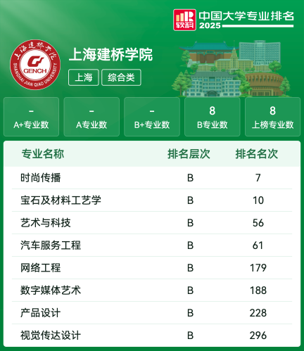 | 专业名称 | 评级 | 专业排名 |