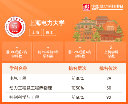 上海电力大学是中央与上海市共建、以上海市管理为主的全日制普通高等院校。学校创建于1951年,长期隶属于国家电力部门管理,2000年属地化管理。学校历经上海电业学校、上海动力学校、上海电力学校、上海电力高等专科学校、上海电力学院的发展演变,1985年起开始本科层次办学,2006年开始硕士层次办学,2018年成为博士学位授予单位,形成了学士、硕士、博士完整的学位授权体系。2018年,经教育部批准同意,更名为上海电力大学。学校现有杨浦、浦东两个校区。
